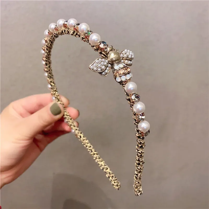 Cute Bee Headband Hair Hoop Pearl Designer Hairbands for Women Girls Crystal Rhinestone Head Band Casual Bridal Hair Accessories