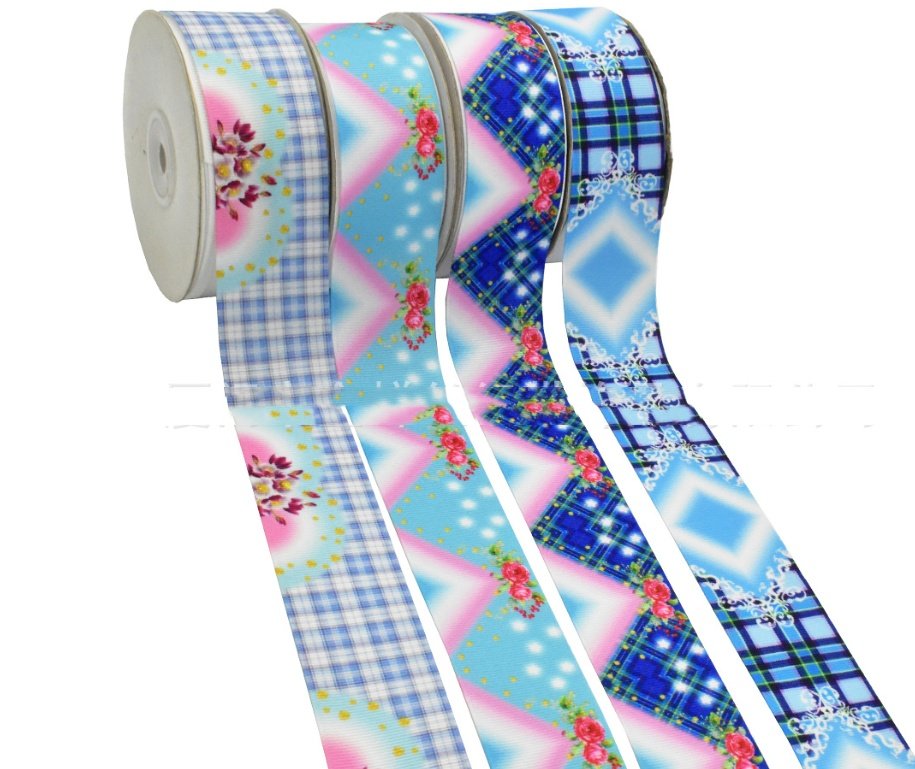 Digital Printing Ribbon Bow Handmade Webbing Satin Gradient Plaid