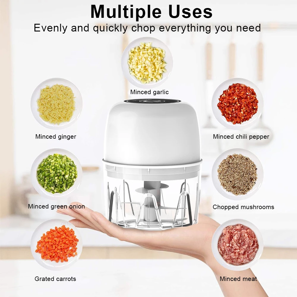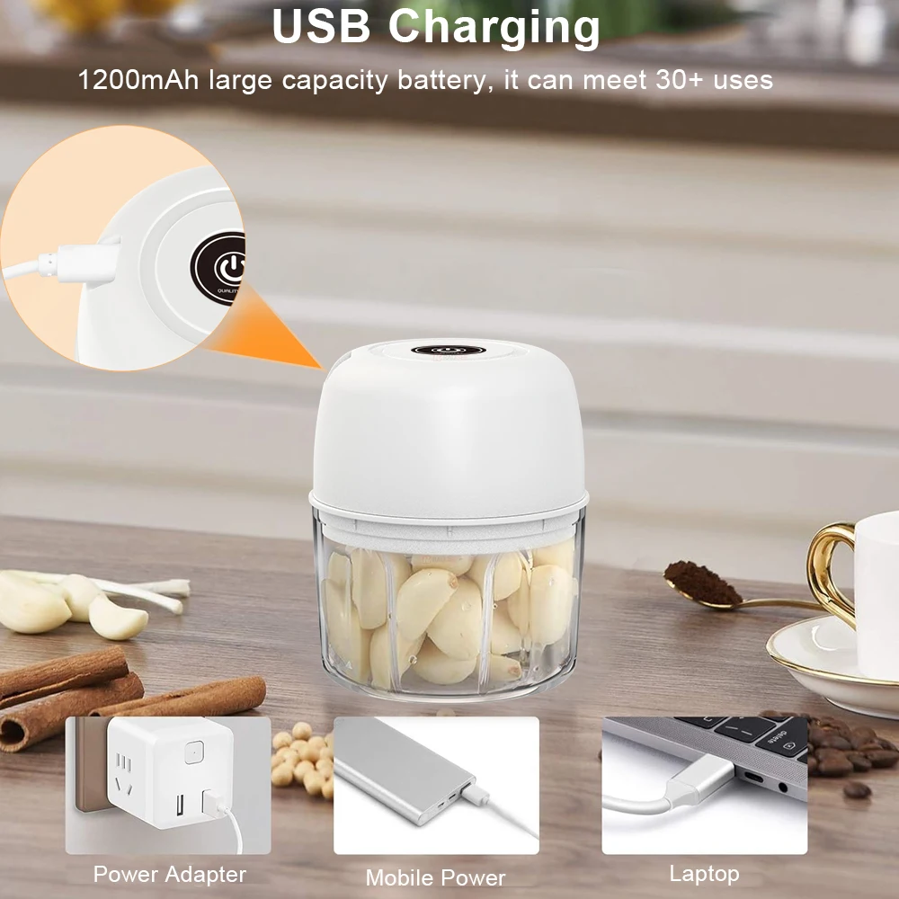 Electric Food Chopper Mini Garlic Masher Crusher for Kitchen Meat Grinder Vegetable Chopper USB Rechargeable Portable Chopper