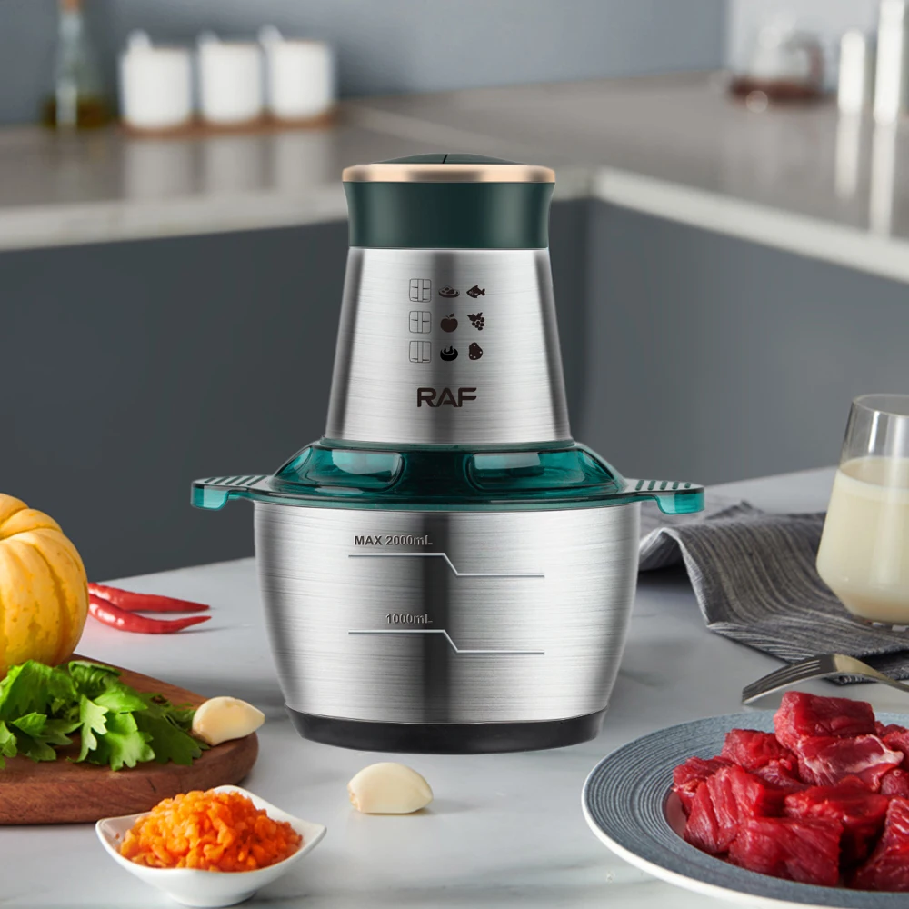 Electric Meat Mincer Grinder Stainless Steel Chopper 2L Food Processor Garlic Mud Maker Blender Large Capacity Kitchen Utensils