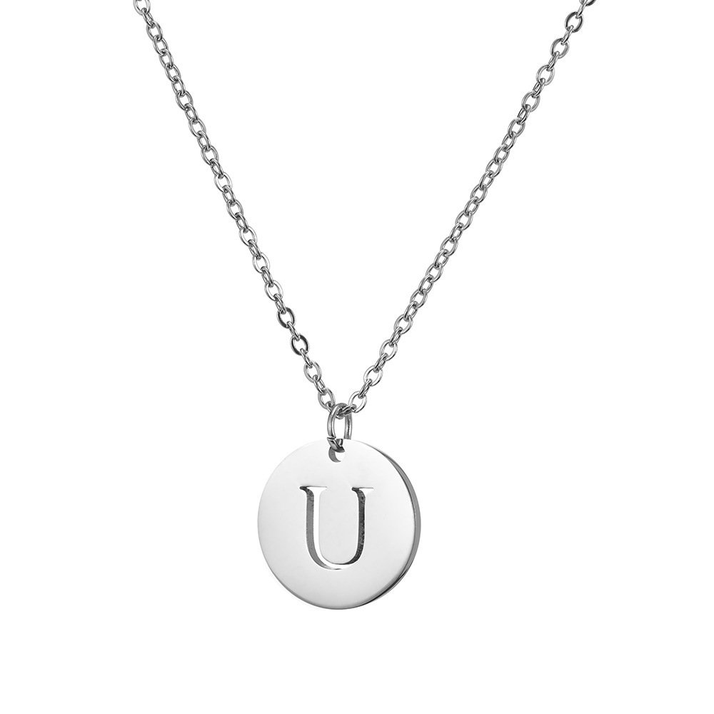 European And American Fashion Minimalist Titanium Steel Color Retention A- Z 26 Capital Letter 12mm Round Plate