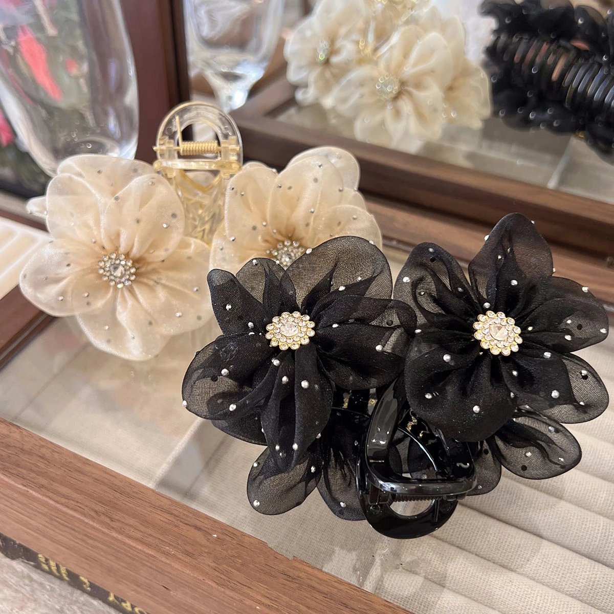 Be the first to review “Flower Mesh Hairpin Temperament Elegant Women Hair Claw Clips Princess Headdress Fashion Grab Clip Female Hair Accessories” Cancel reply
