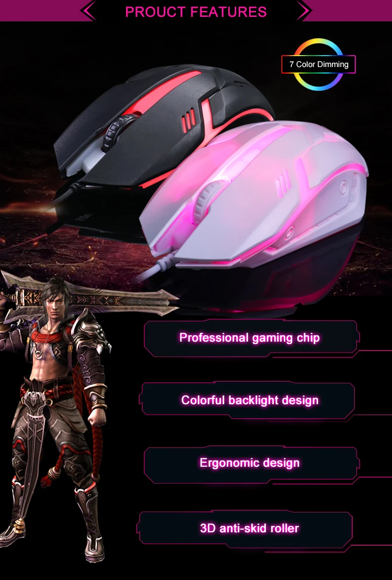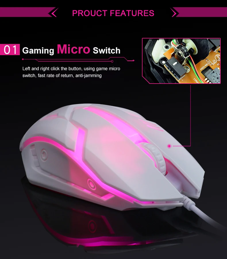 Click the button left and right,use game micro switches,fast return rate,anti jamming.