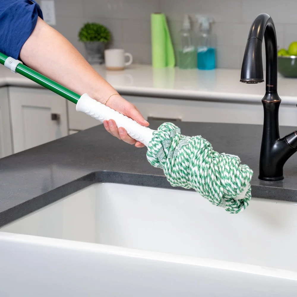 The Tornado Mop covers 50 percent more surface area than its competitors, getting the job done faster. It is the ideal cleaning tool for many types of surfaces, plus it is made of heavy-duty yarn that is machine washable and easy to change. The mop also comes with a grip ‘n click ratchet that wrings out more water, making it very effective and easy on the hands. Total weight 1. 5lbs.Â