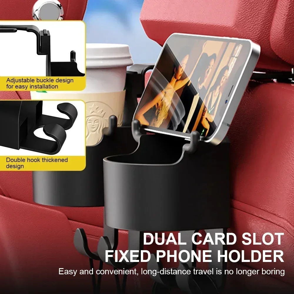 Enhance your car organization with our Car Back Seat Cup Holder. It has thickened hooks for stability and can hold garbage bags too. It doubles as a mobile phone holder and features a double size hook that won’t deform or break. Enjoy convenience without clutter.