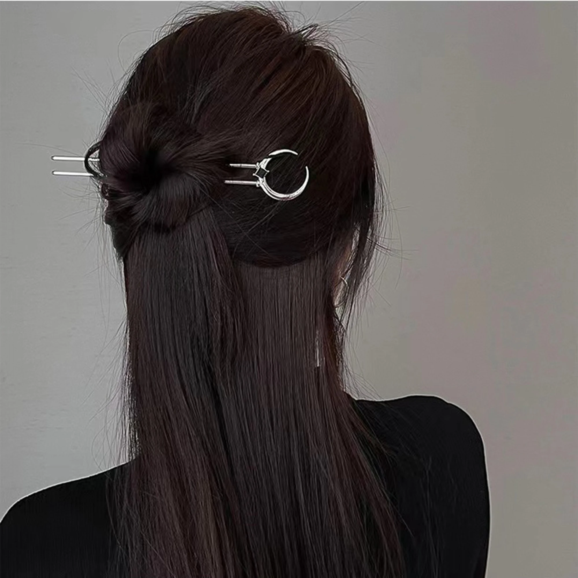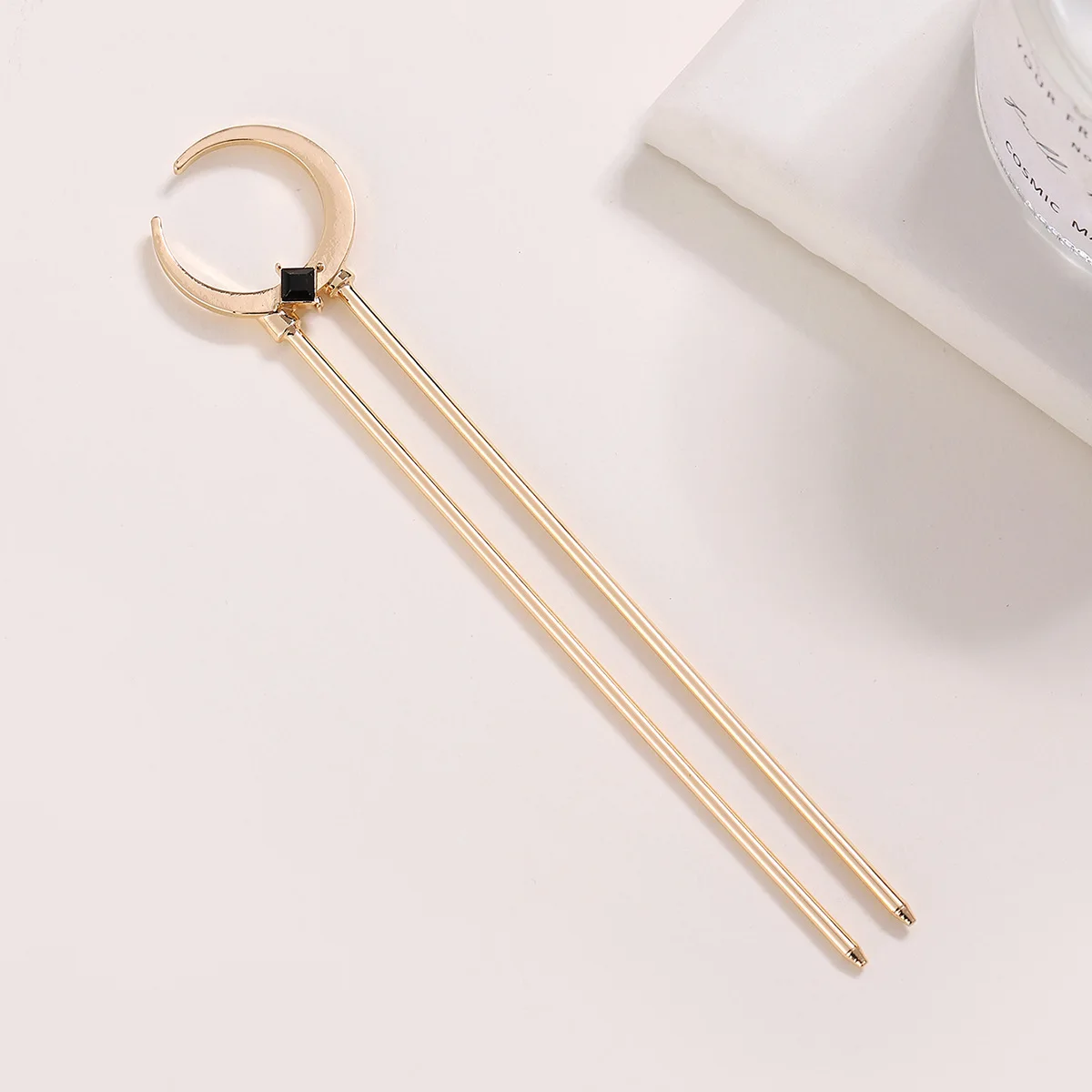 New Hairpin Hair Sticks Minimalist Black Moon Trendy Vintage Metal Hair Accessories Headwear Hairstyle for Women Jewelry Gifts