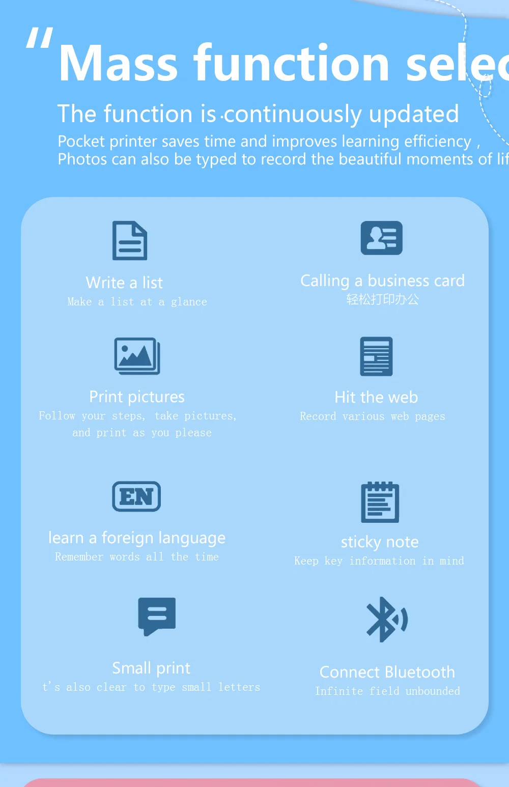 Portable Mini Bluetooth Wrong Printer Mobile Phone Photo Title Note Print Pocket Student Error Label Printer for Children’s Gift