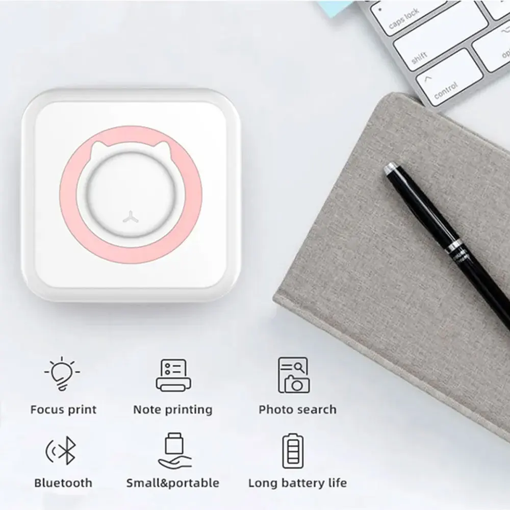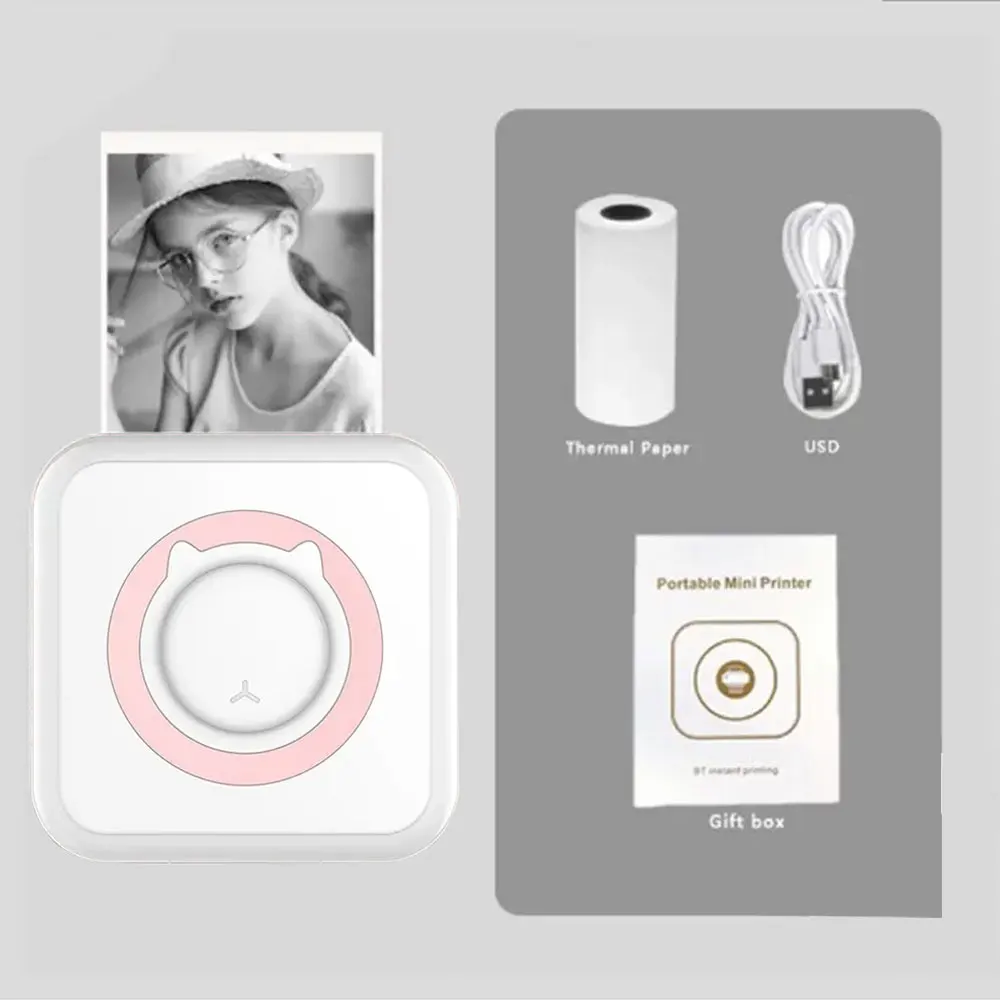 🖨️ Mini Thermal Printer – Built-in small and portable 1200mAh mini thermal printer, with a portable design, you can take it with you and print photos anytime, anywhere. The only black and white printing can print photos, labels, record, web pages, QR codes, etc.