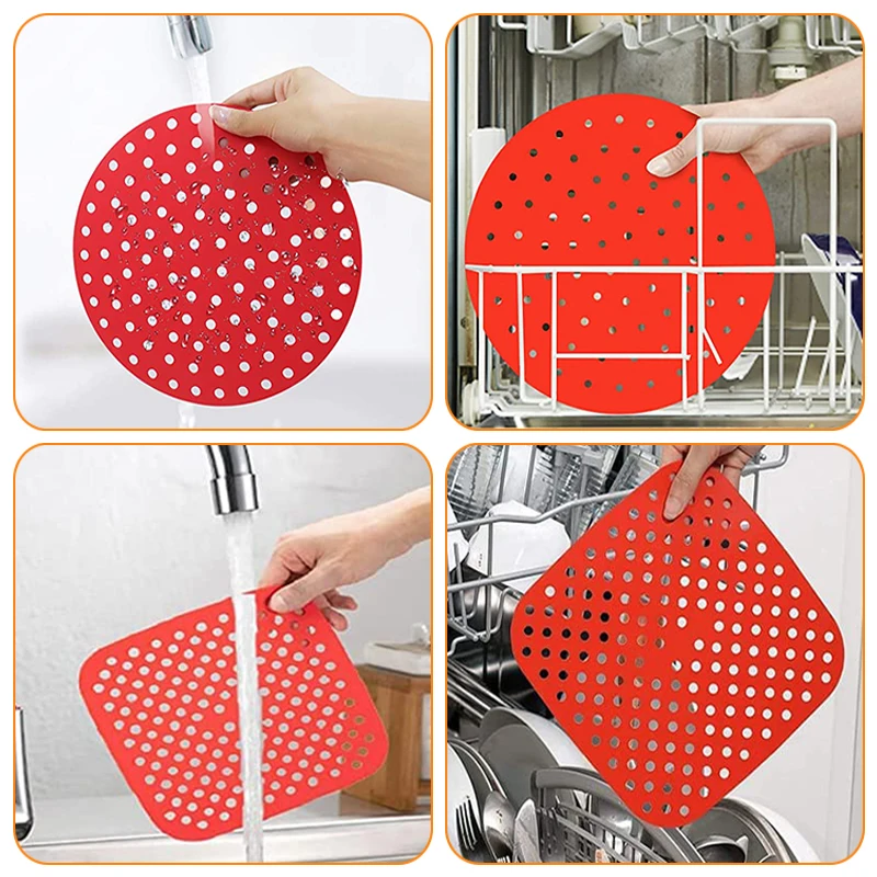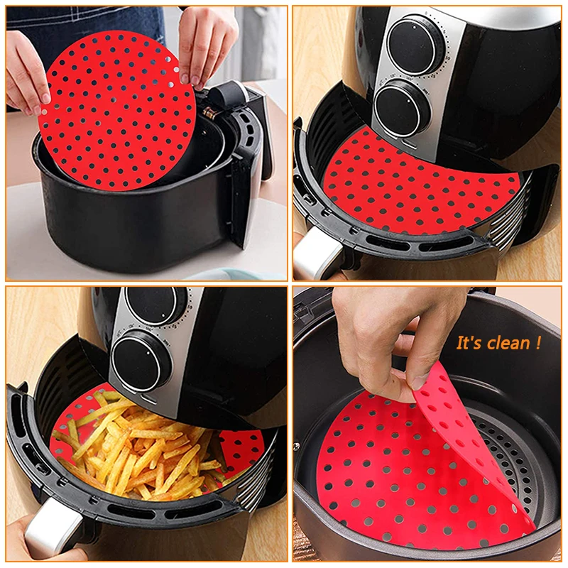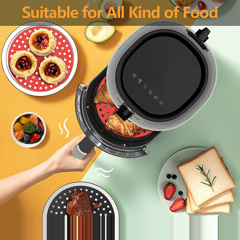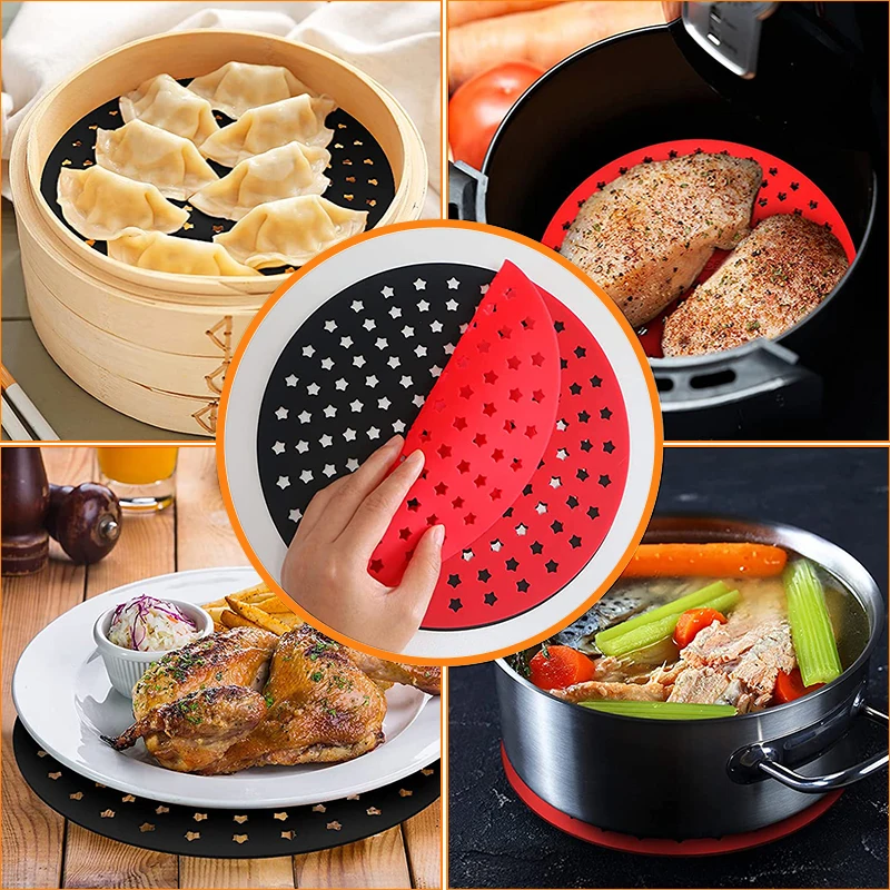 Reusable Silicone Air Fryers Mat Liner Non-Stick Steamer Pad Baking Inner Liner Cooking Mat for Kitchen Accessories Round Square