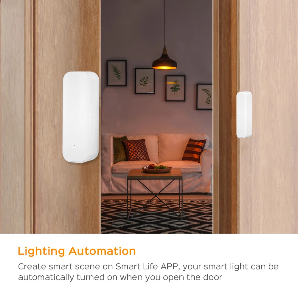 The door sensor can be linked with other smart devices in the home and make your home more smart after connected with zigbee hub. Low advantage design to ensure long-term battery life. For example, the light will be on automatically when the door is open. (Note that the light needs to be used with WIFI switch).