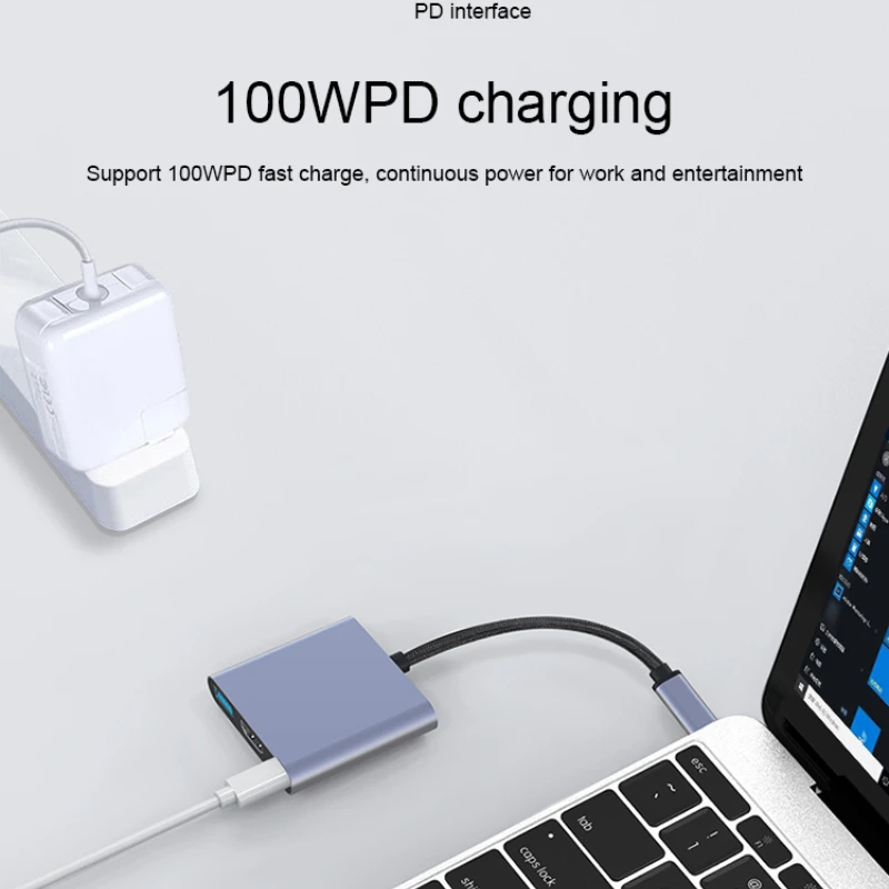 1.Type-c 3-in-1 expansion, plug and play multi-port same connection, support laptop/tablet/cell phone expansion.