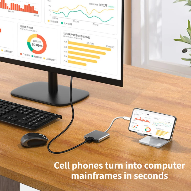 3. Mobile phone into a computer host in seconds, support Huawei P40/Mate30 and other cell phones connected to a large screen TV, while charging and connecting U disk, keyboard and mouse, mobile office more convenient.