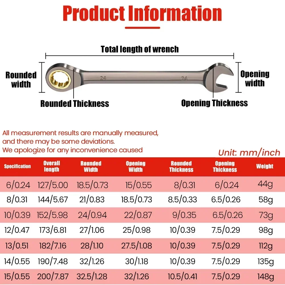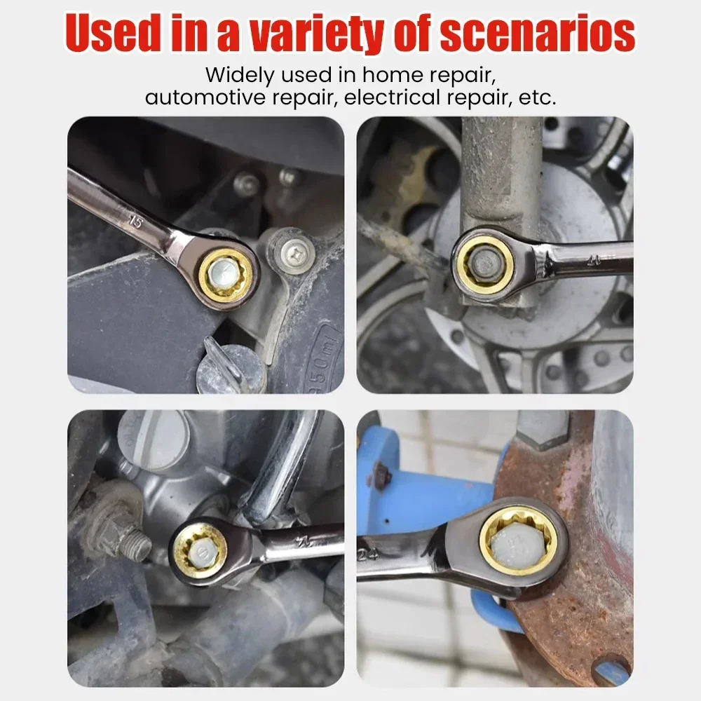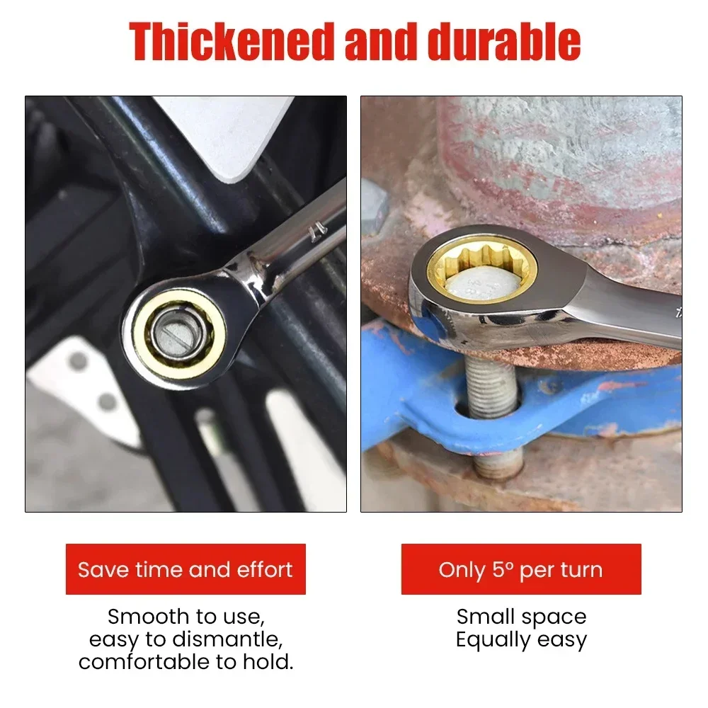 1Pc Multifunction Wrench Flexible Golden Ratchet Wrenches Torque Universal Spanners for Car Repair Tools Metric Hand Tool 6-15mm